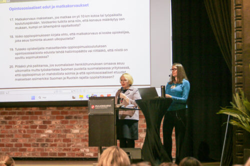 Perinteinen ja odotettu Mari Pastila-Eklundin (OKM) ja Riikka Vackerin (OPH) kyselytunti tarjosi vastauksia ajankohtaisiin kysymyksiin ja herätti vilkasta keskustelua oppisopimuskoulutuksen kehittämisestä.