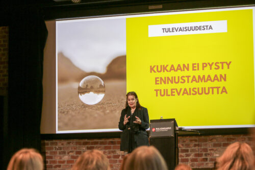 Futuristi Elina Hiltunen herätteli ajattelemaan megatrendejä: ilmastonmuutos, väestörakenteen muutos, digitalisaatio ja tekoäly. Vaikka kukaan ei voi ennustaa tulevaisuutta, meidän on seurattava aikaamme ja varmistettava, että sekä me että ne, joiden osaamista kehitämme, omaksuvat tulevaisuuden työelämätaidot.